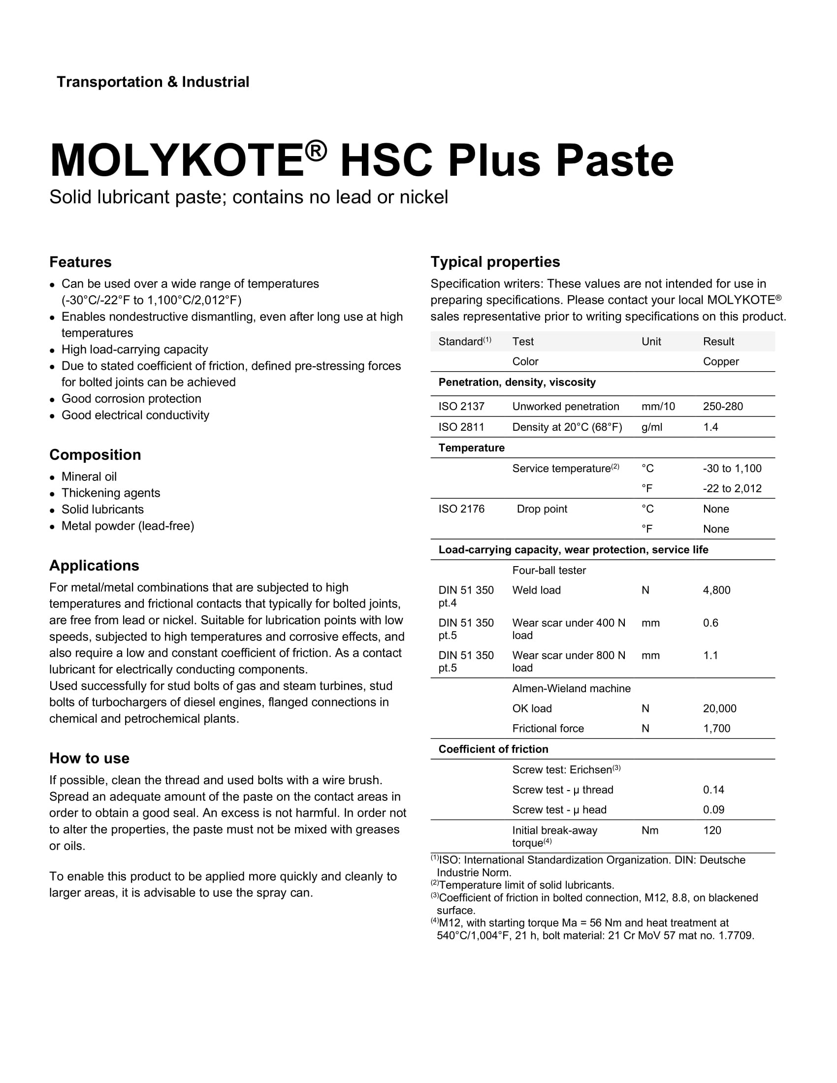 Areas of Usage: It is generally used in bolts exposed to high temperatures. It is also suitable for corrosive environments, low speeds, lubrication points. It has a low friction coefficient. It is a lubricant containing electrically highly conductive components. It is successfully used in gas and steam turbines, turbo bolts of diesel engines, flanged anchor bolts in chemical and petrochemical plants.